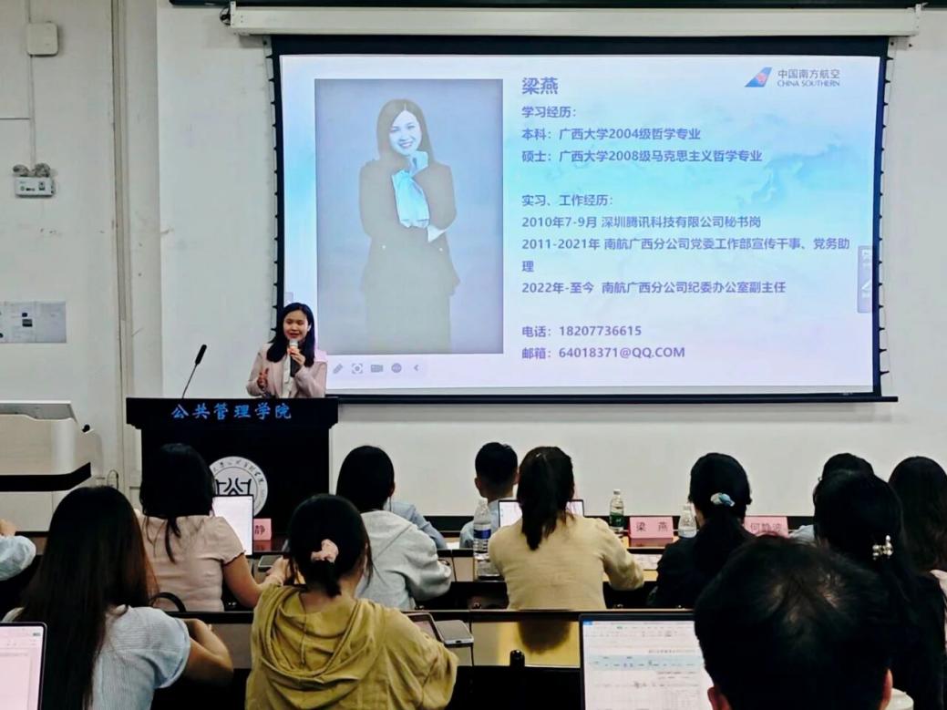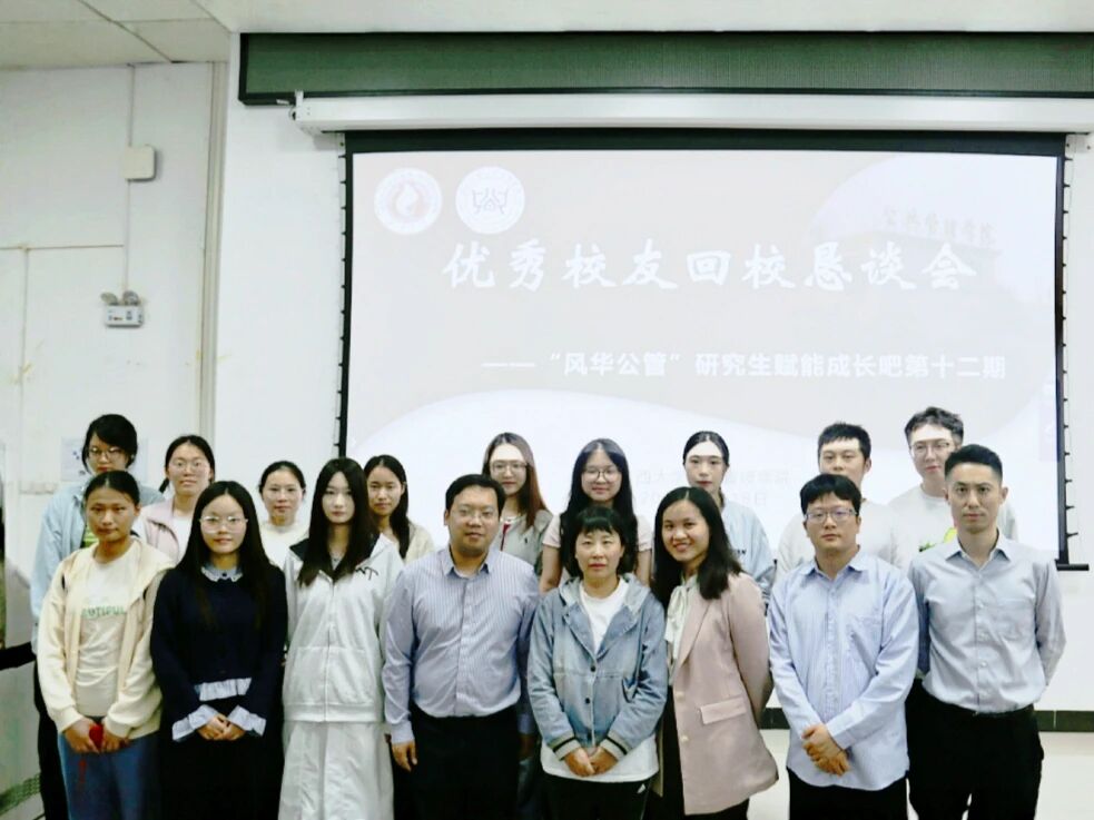 为破解学子们的择业困惑,拓宽就业视野,明晰职业发展方向,3月18日晚,我院于101教室成功举办第十二期“风华公管”研究生赋能成长吧优秀毕业生回校恳谈会。本次活动特邀冯宇、梁燕、耿卓、何静波四名国企优秀校友担任分享嘉宾,围绕国企求职实战经历与职场深耕经验,从招聘政策解读、简历优化技巧、职场实战方法、职业成长路径等方面展开全方位交流分享。黄文静老师及我院众多本硕学子参与本次活动。