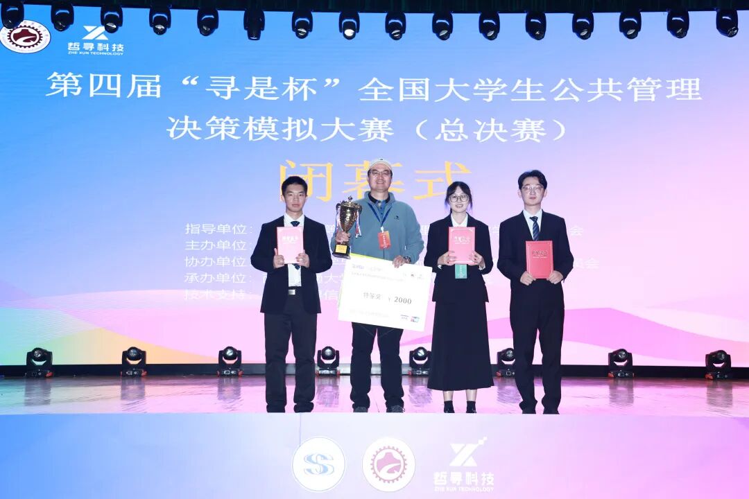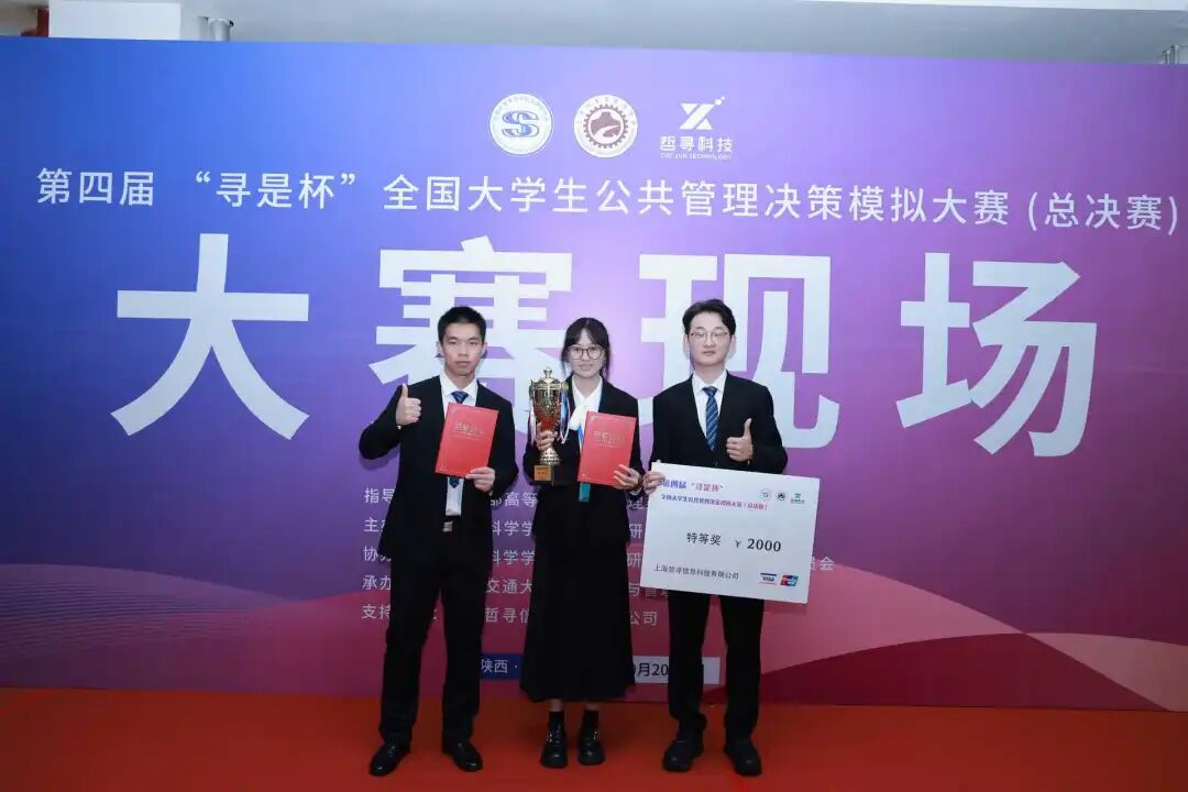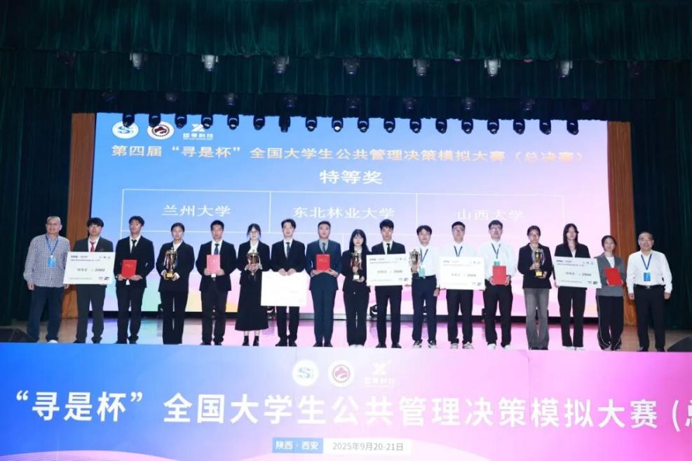 2025年9月20日至21日,第四届“寻是杯”全国大学生公共管理决策模拟大赛(总决赛)在西安交通大学(兴庆校区)顺利举办。在我院李国梁、黄文静两位老师的指导下,我院本科生李文杰、孙昕阳、杨如意组成的勤恳厚学队荣获第四届“寻是杯”全国总决赛特等奖。