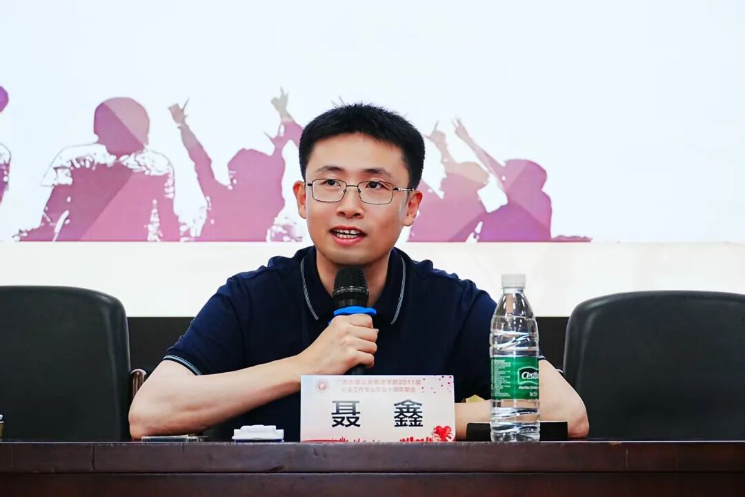 聂鑫对重返母校的毕业生校友表示热烈的欢迎,带领在座师生一同回顾了过去勤勉求学的青春岁月与学院近年的发展历程。他高度肯定了毕业生们在各自岗位上取得的卓越成就,并强调校友对于学院发展进步的重要作用。聂鑫对各毕业生提出期望,希望我院毕业生们能够“常回家看看”,持续关注母院发展,在中国特色社会主义建设的广阔的天地里实现自我价值、传承公管精神。