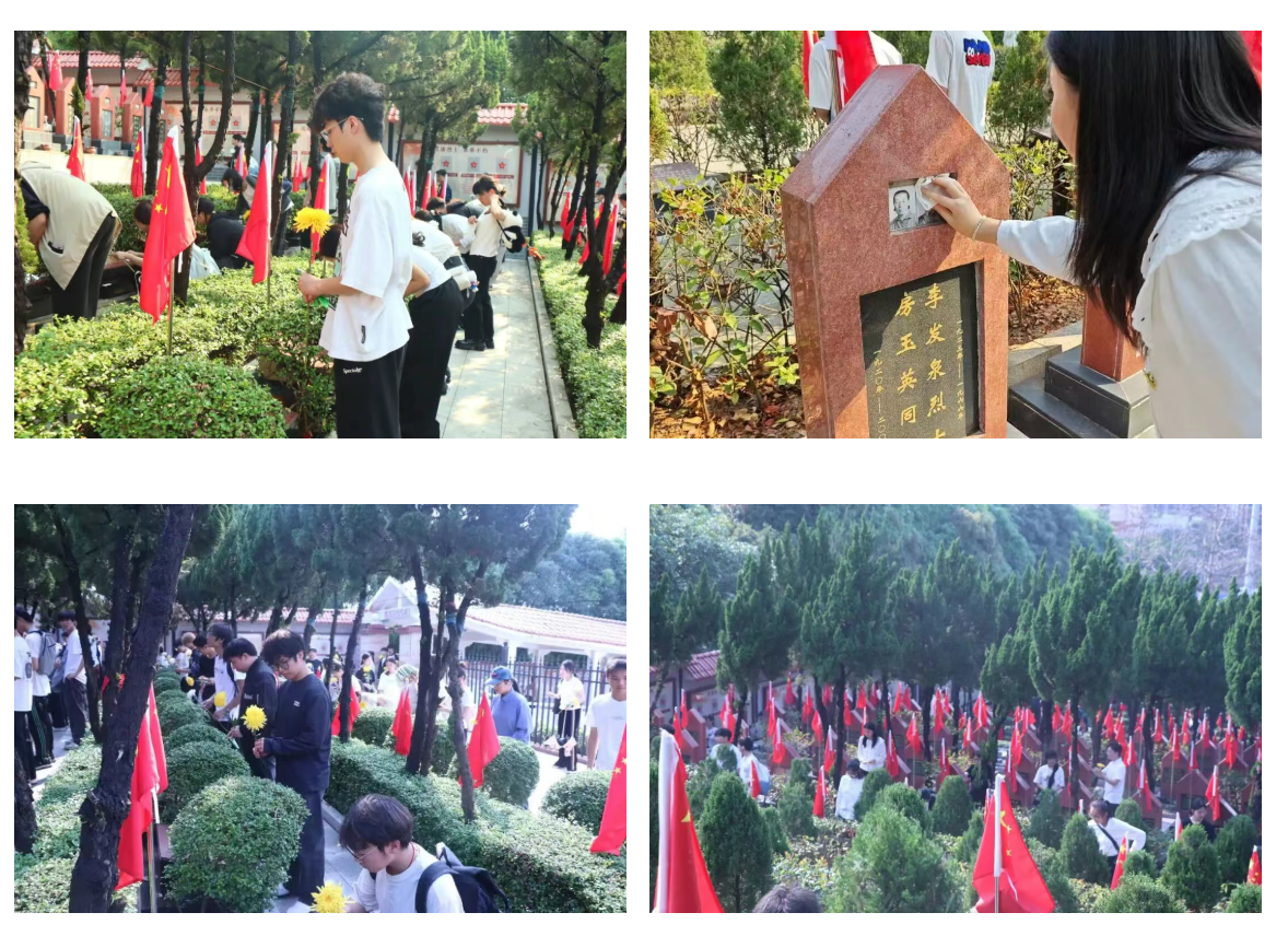 图|我院学子擦拭墓碑、为烈士献花