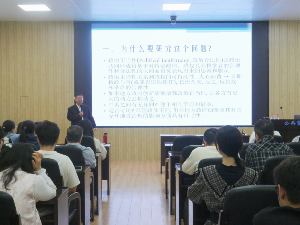 11月7日上午,北京大学中国政治学研究中心学术委员会何增科教授受邀于我院107报告厅开展题为《地方政府创新与政治正当性:中美之间的比较研究》的学术讲座。本次讲座由院党委书记唐旭彬主持,吸引我院众多师生参加,现场学术研讨氛围浓厚。